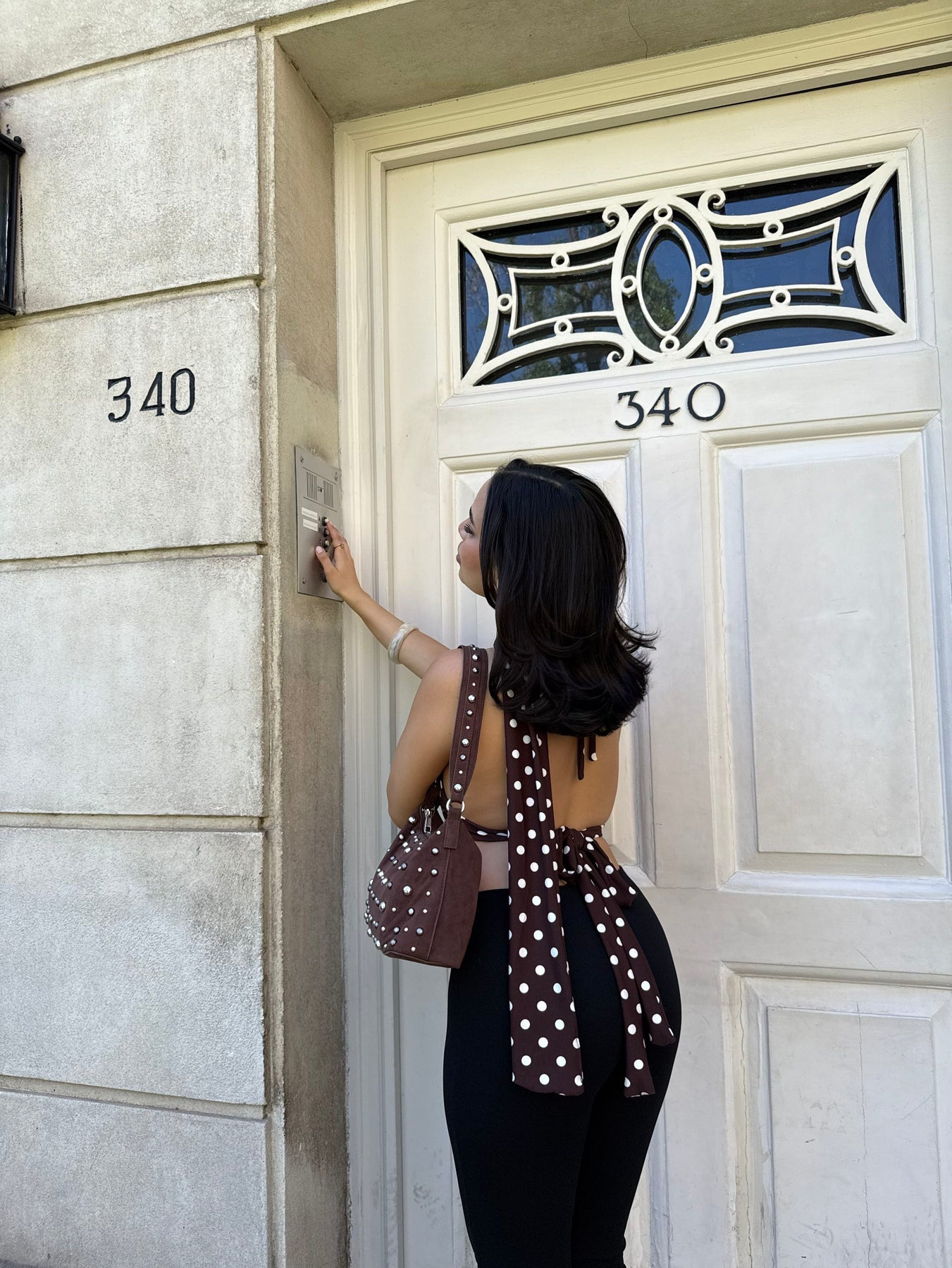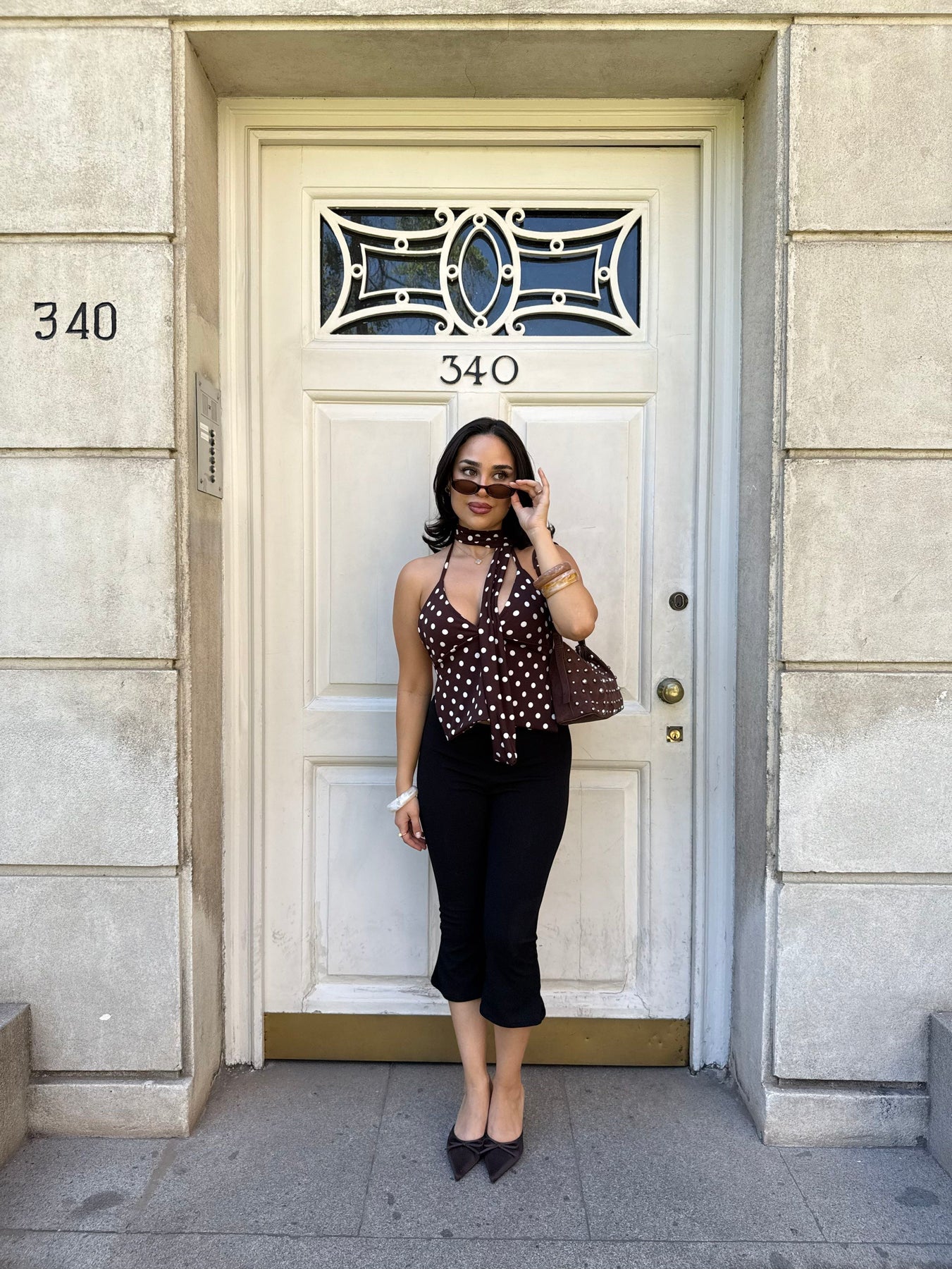 Top allira  , escotado, amarrado en la espalda y cuello, + skinny scarf, otro must have para sentirte incre esta primavera  💐✨