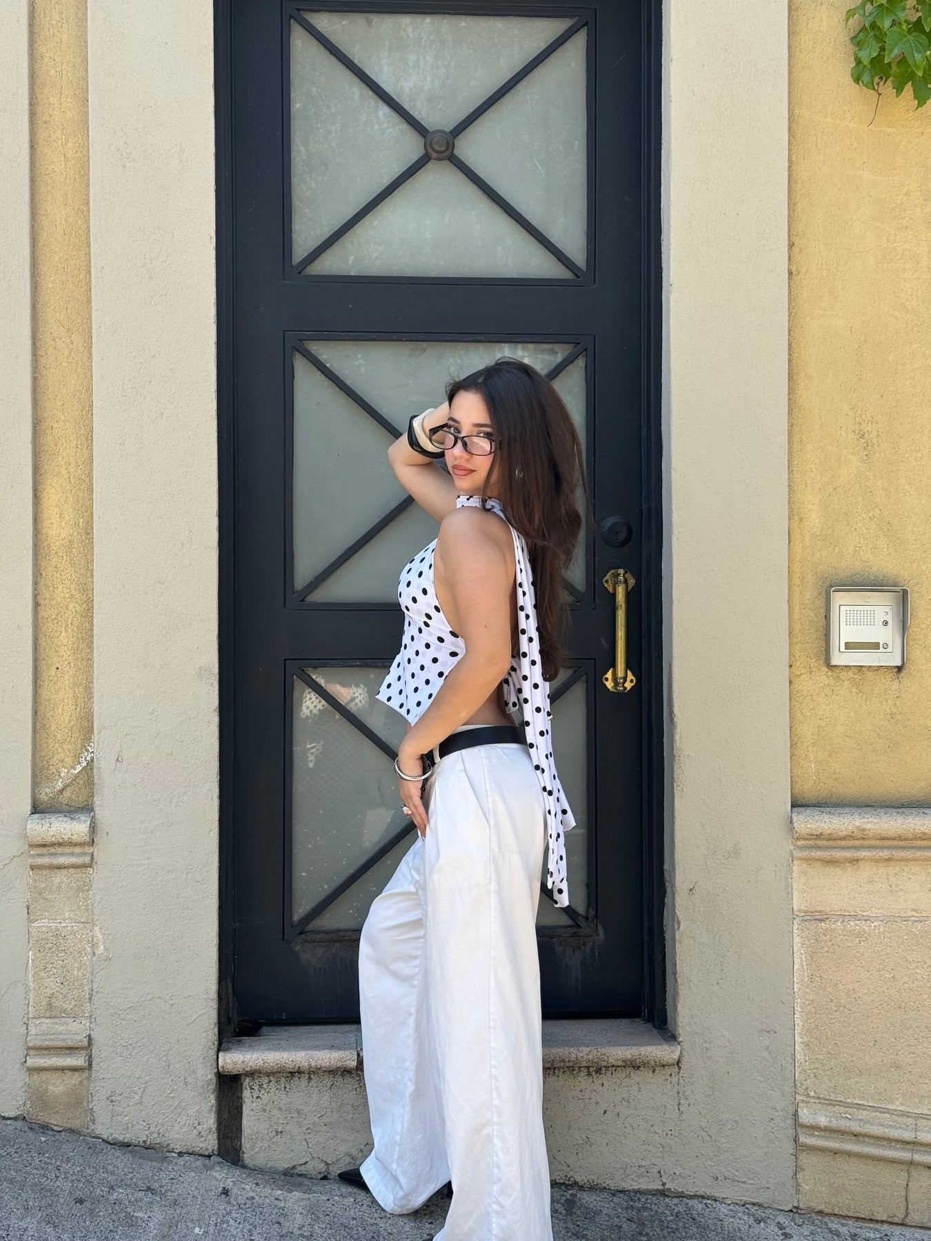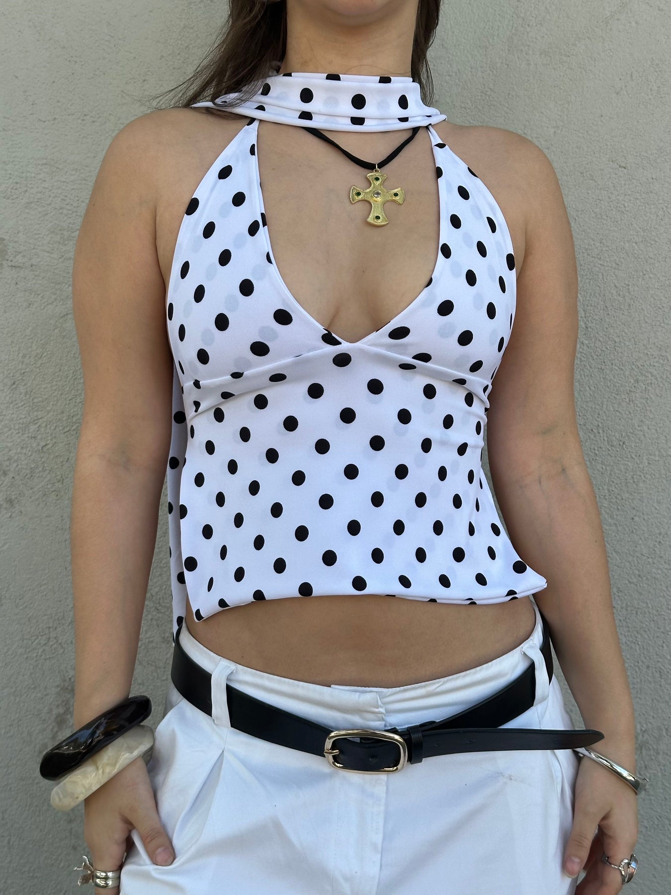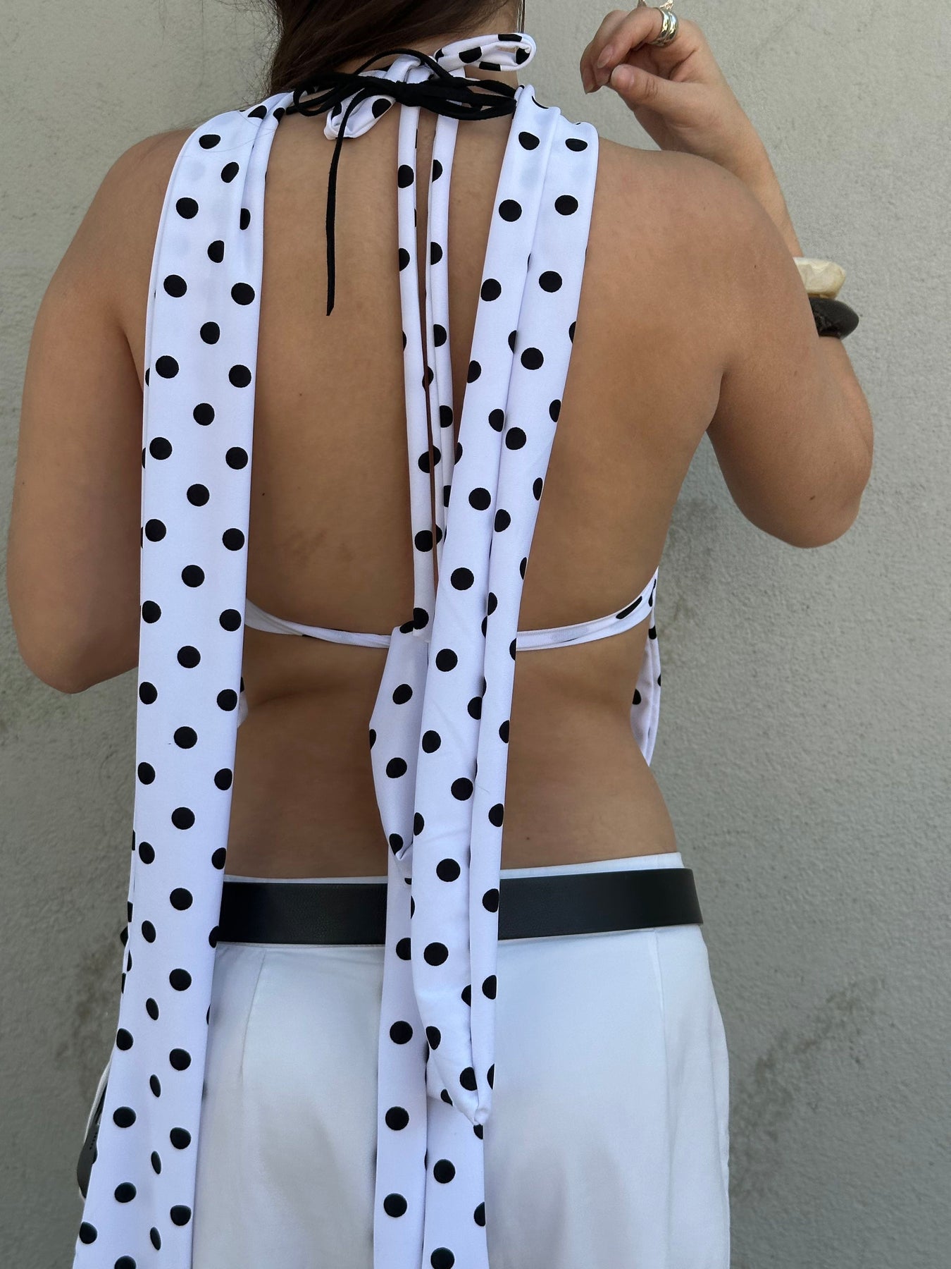 ALLIRA TOP LUNARES NEGRO + SKINNY SCARF