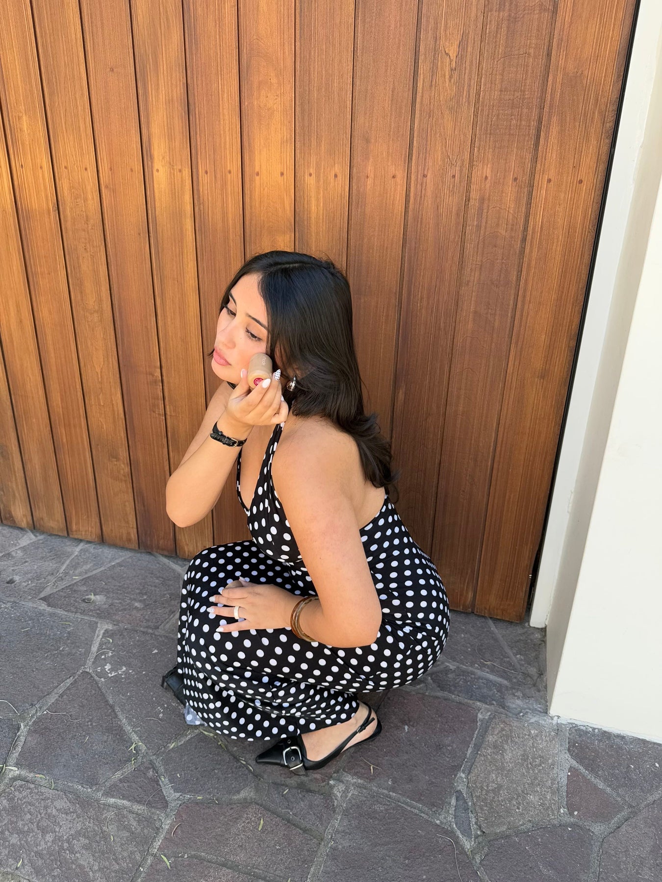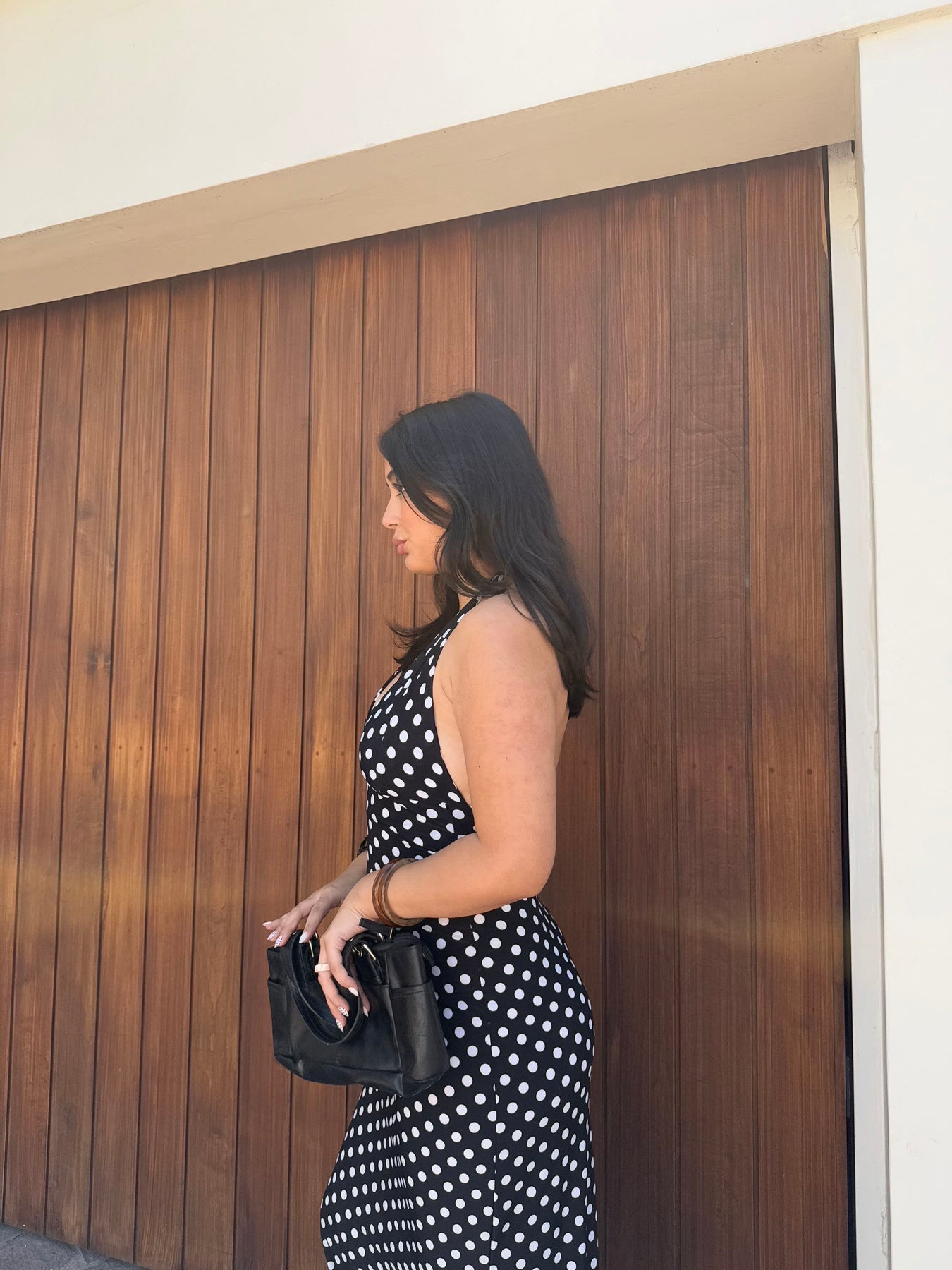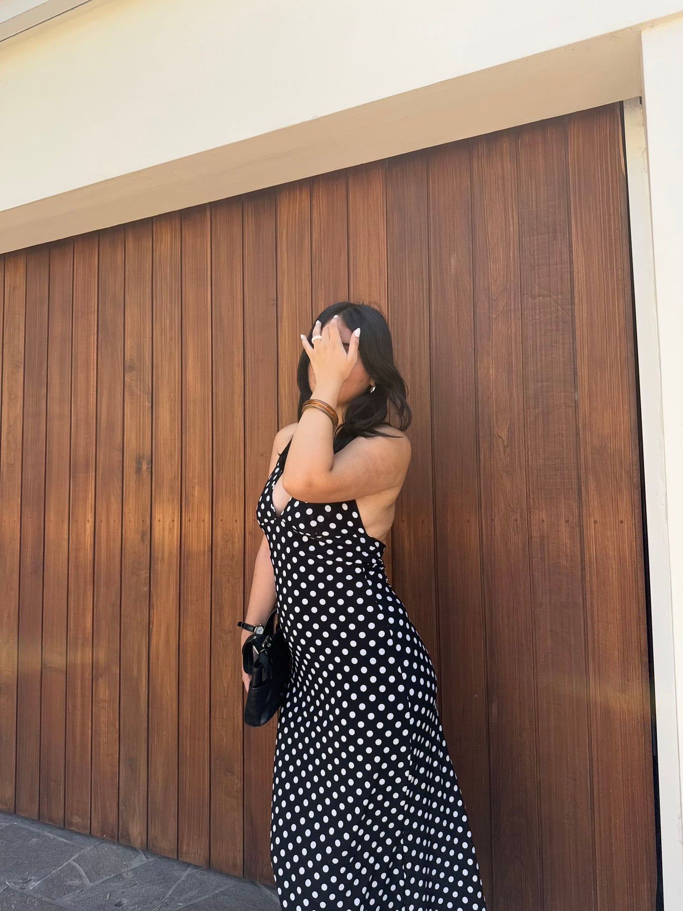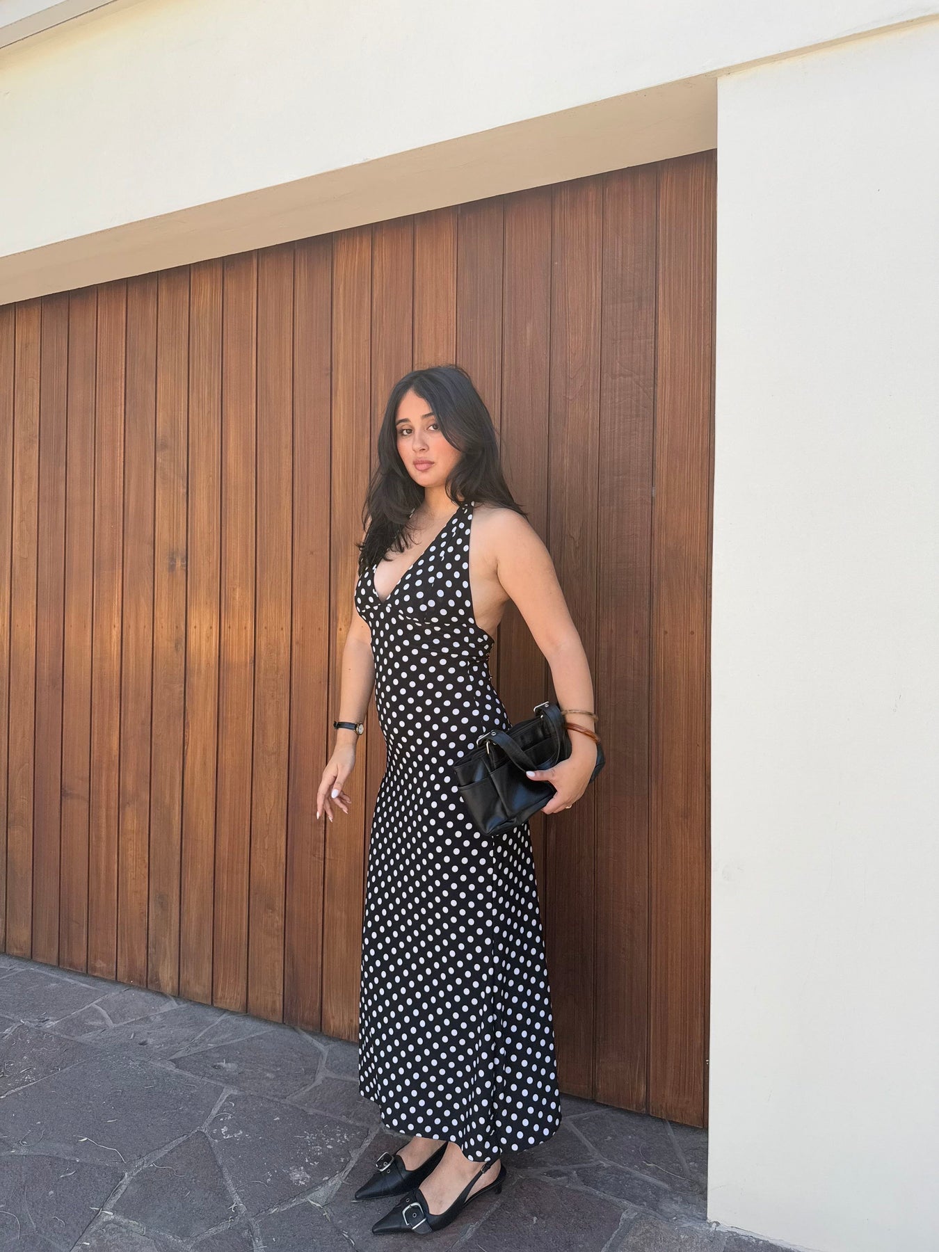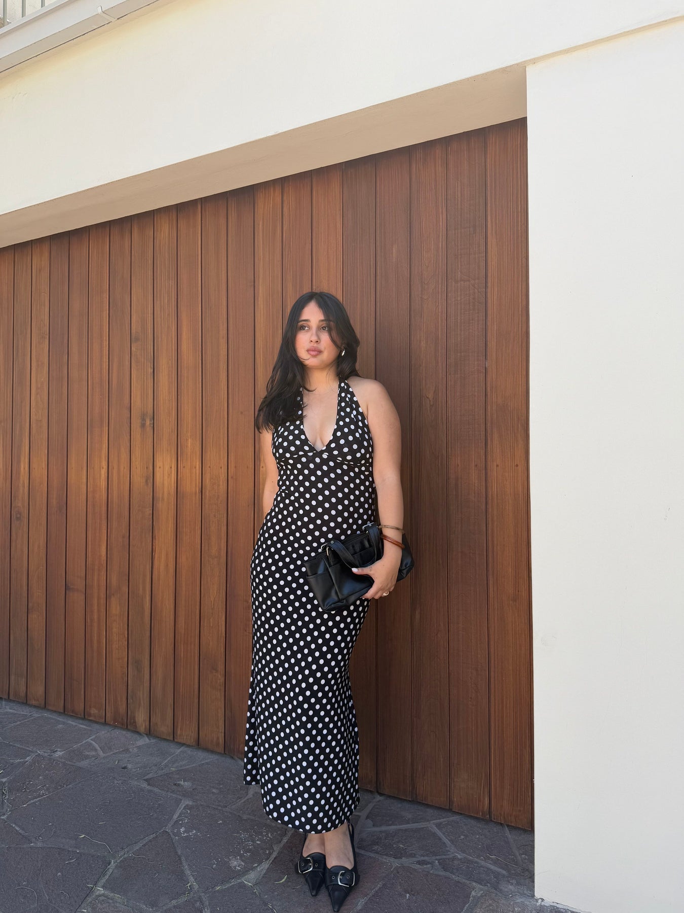 MAXI DRESS LUNARES BLANCO + SKINNY SCARF