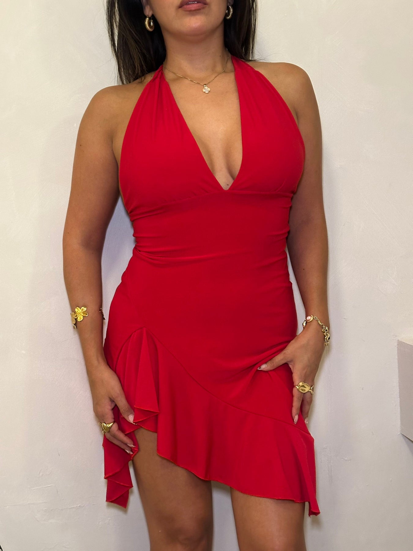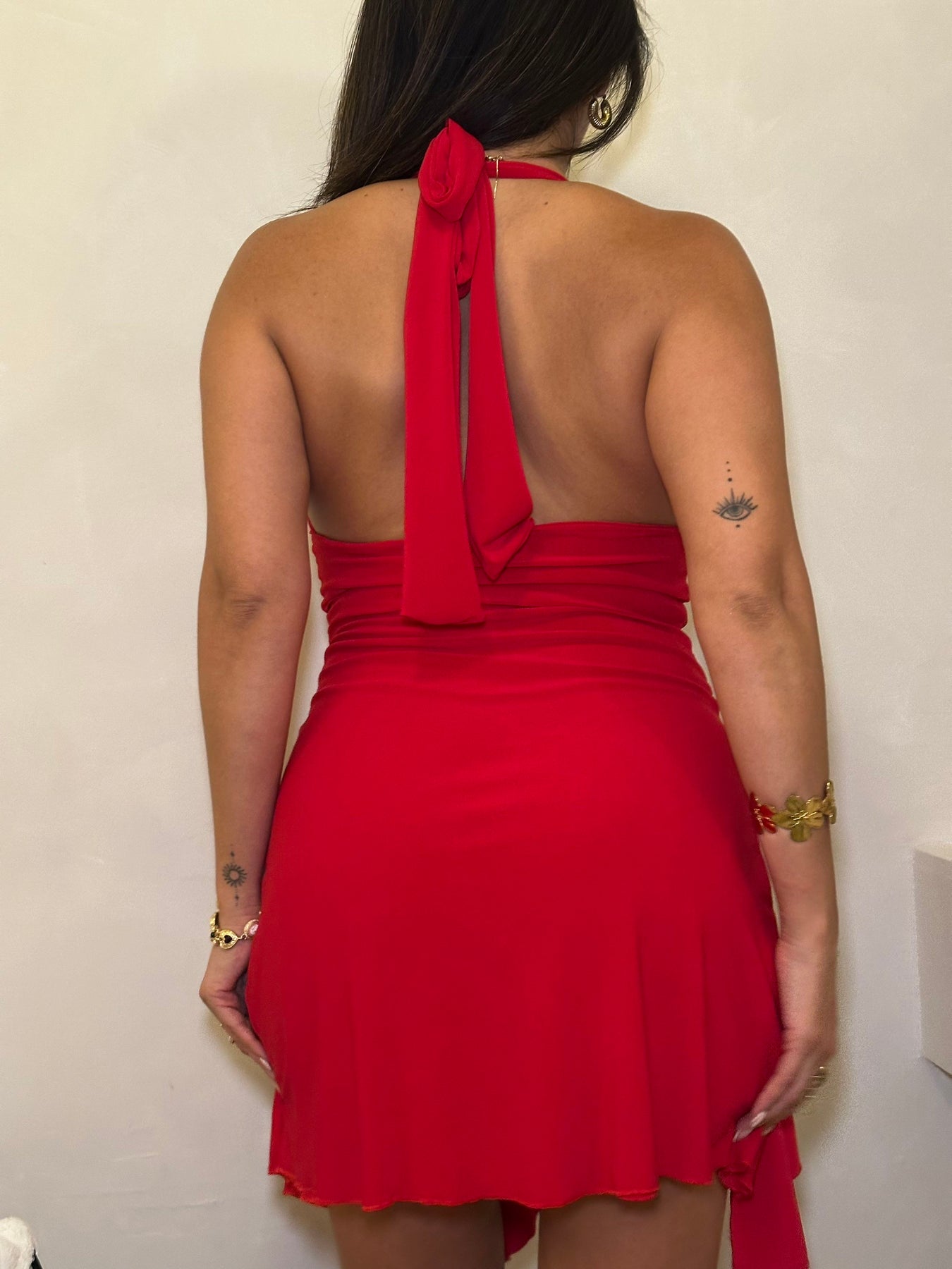 MIDI dress, ideal para tu galentine day 💌🏹🐻 nuevo in! Doble tela completo no se trasluce, escotado y amarrado en cuello, tiene vuelos y un tajo en la pierna que lo hace completamente único y romántico