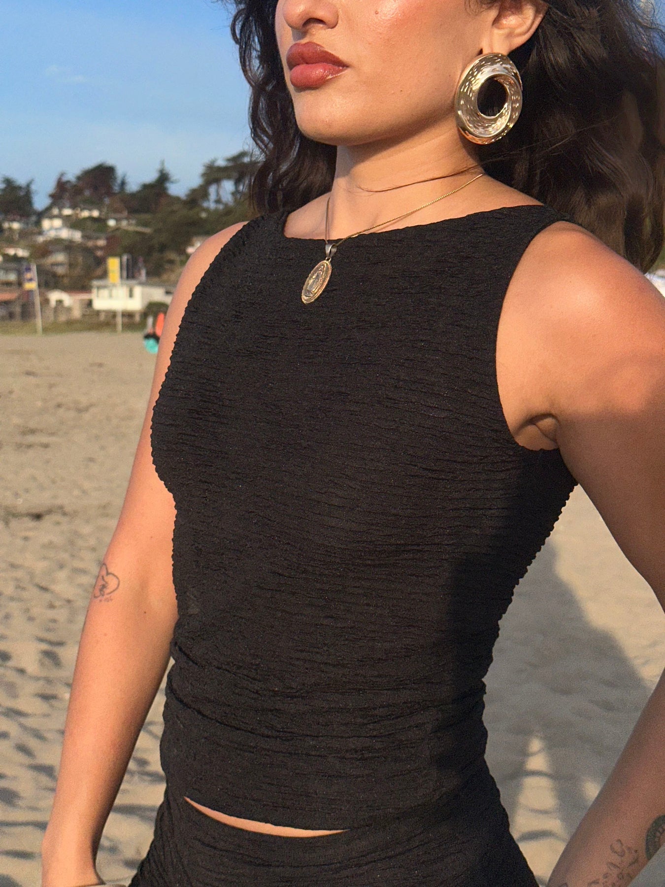 TOP BASICO SIN MANGA nuestros NUEVO BÁSICO sin manga para el verano 🥥🦀 cuello bote, puede usarlo con un hombro caído o como quieras. Tela doble forro en busto