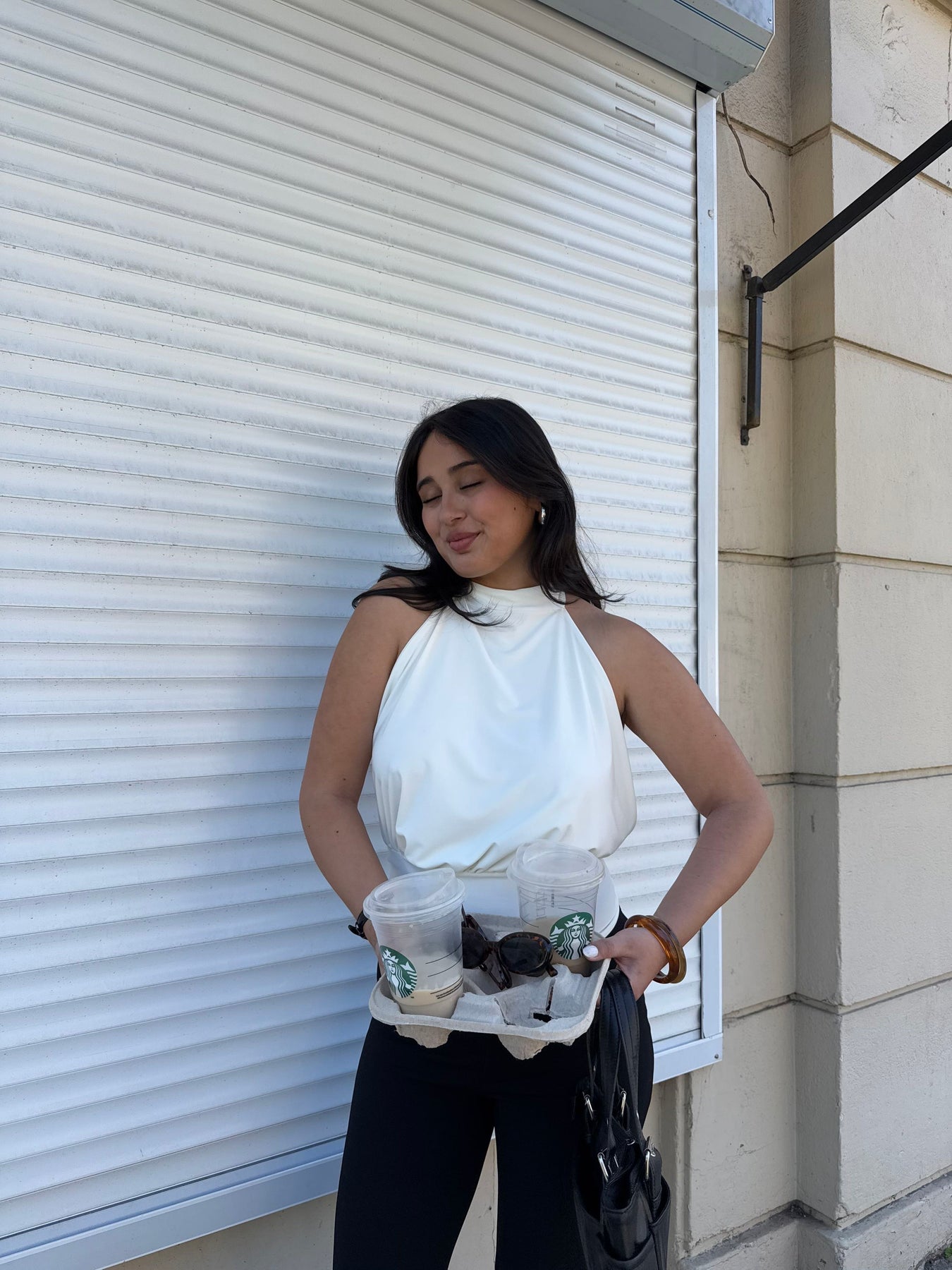 TOP MÍA . con pinzas delantero una caída increíble 😮💨 nuestros nuevo TOP FAV. doble tela no trasluce, y se ajusta en cuello y espalda ( amarrado)